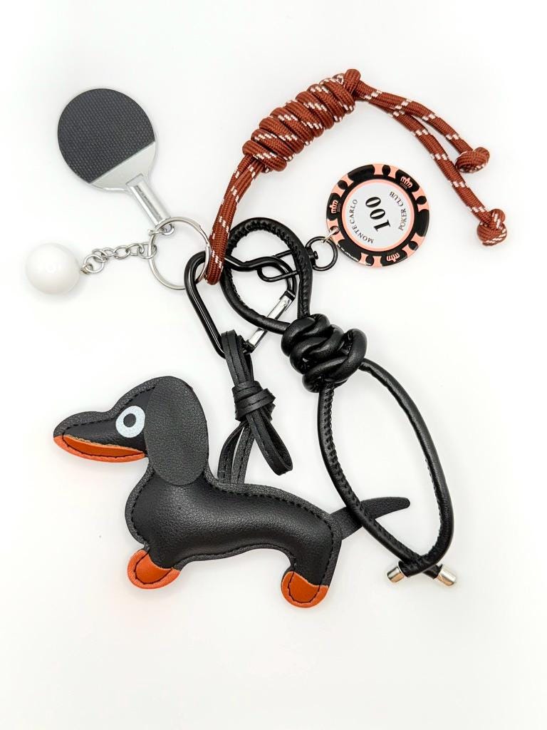 Black Dachshund Bag Charm โ Dog Bag Charm Bundle - Ping Pong & Poker Keychain, Dog Lover Gift, Fun Purse Accessory