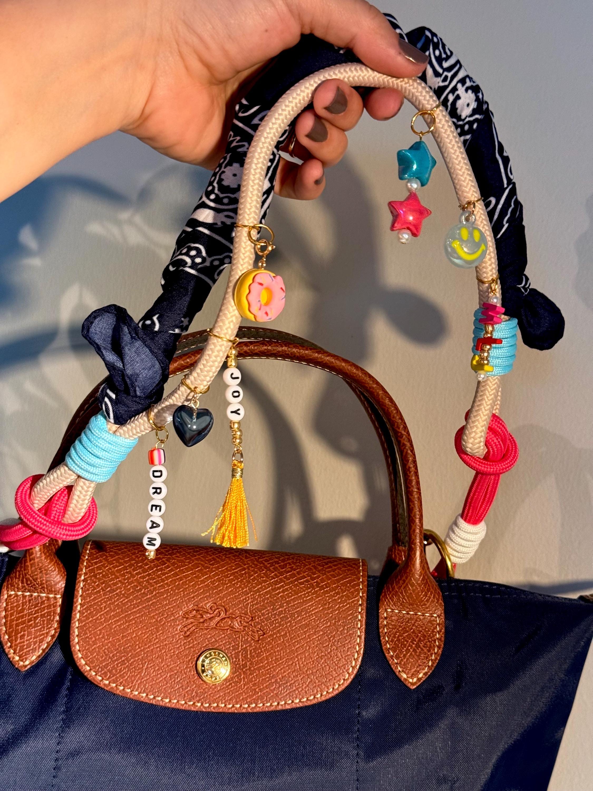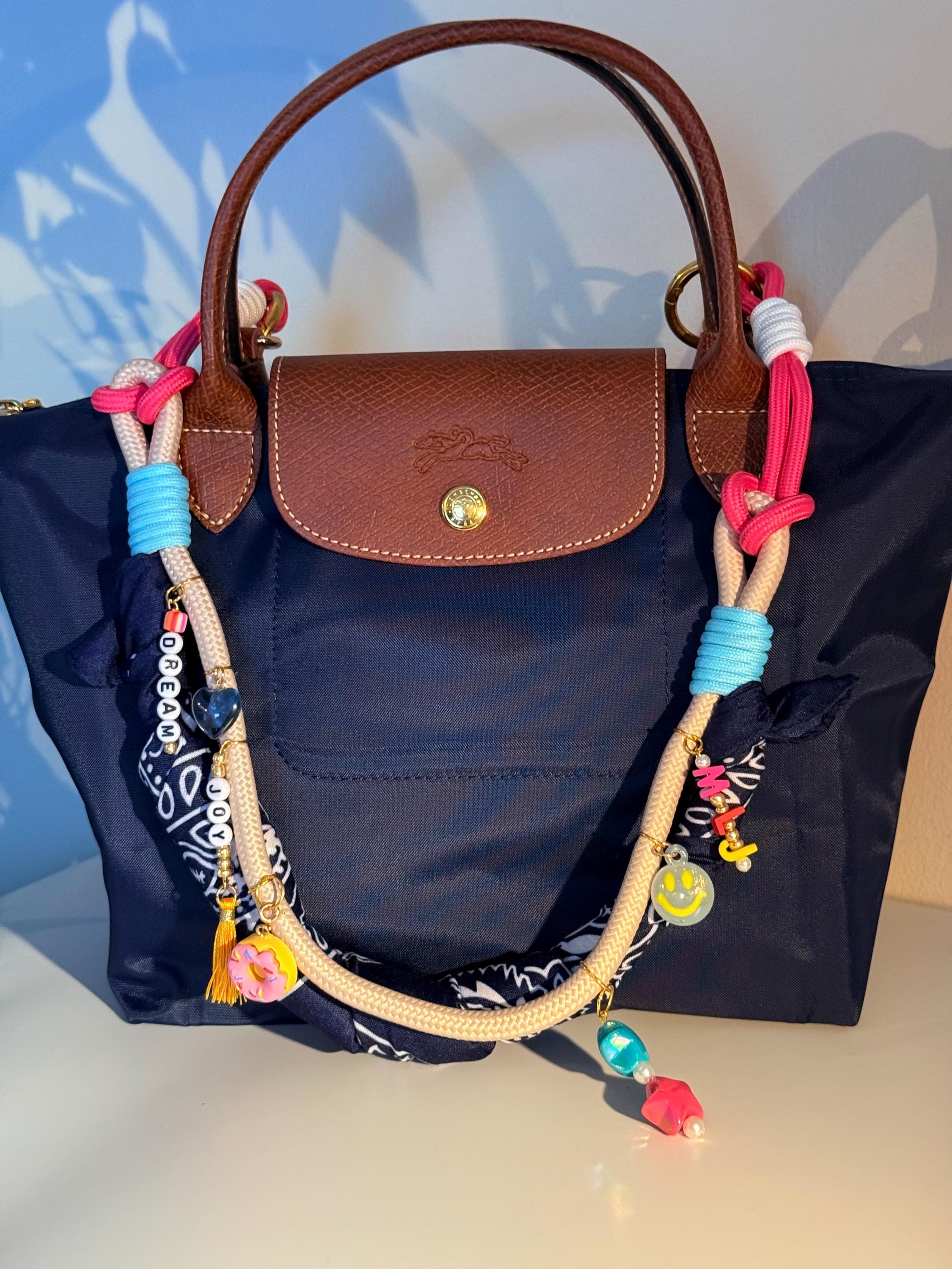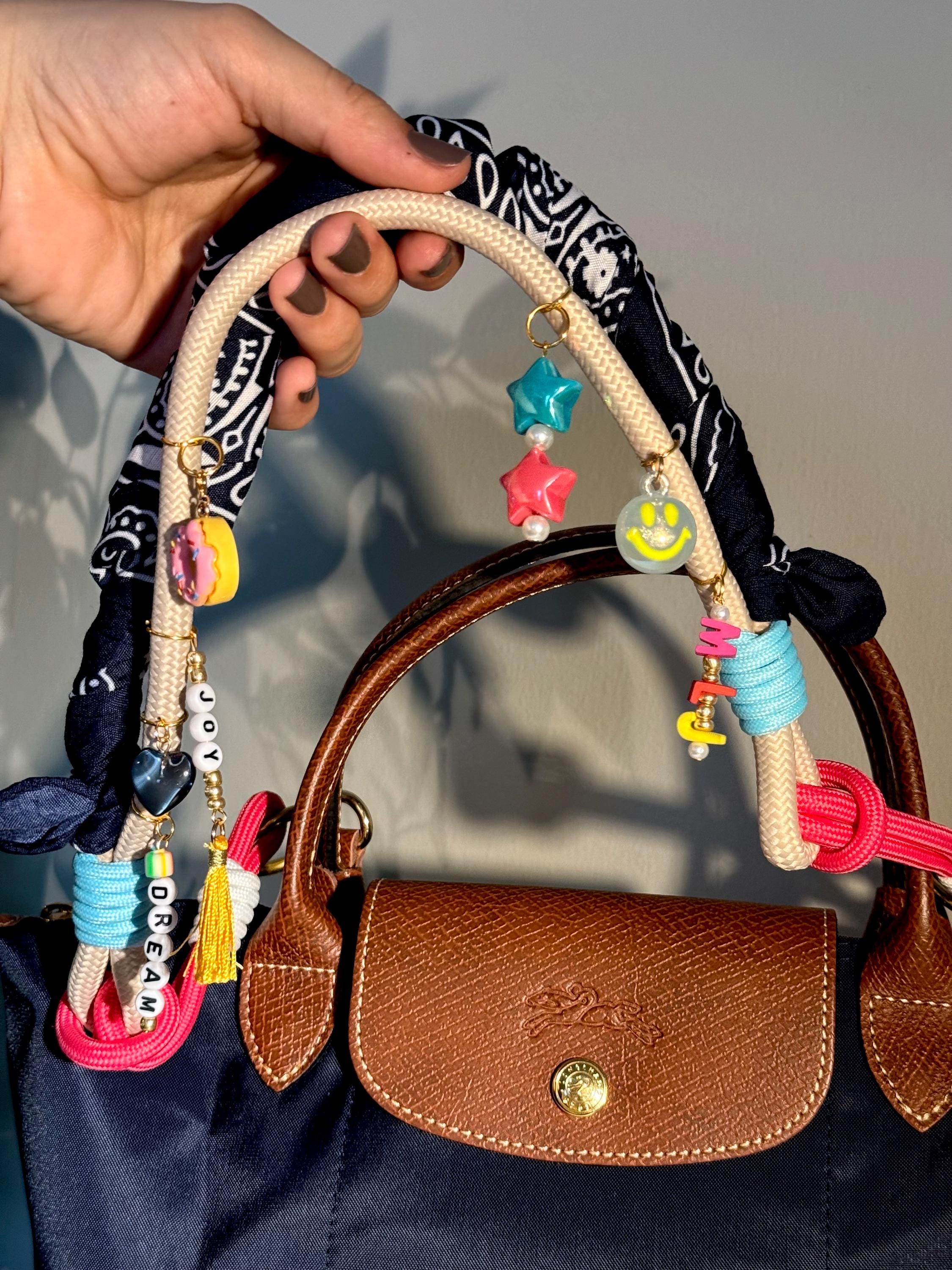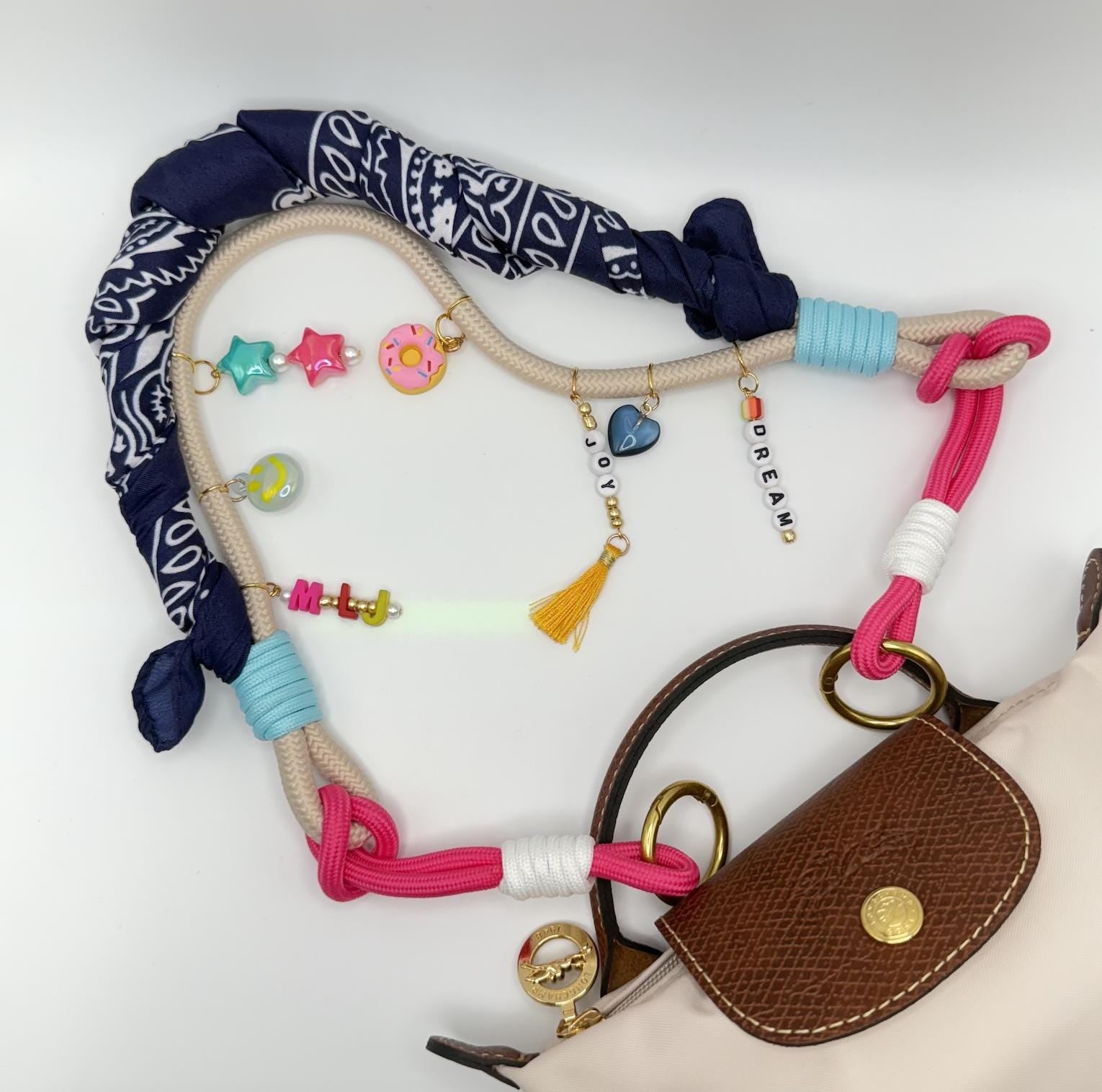 Colorful Rope Bag Strap with Charms β Custom Initials & Beads β Statement Shoulder Strap for Purses