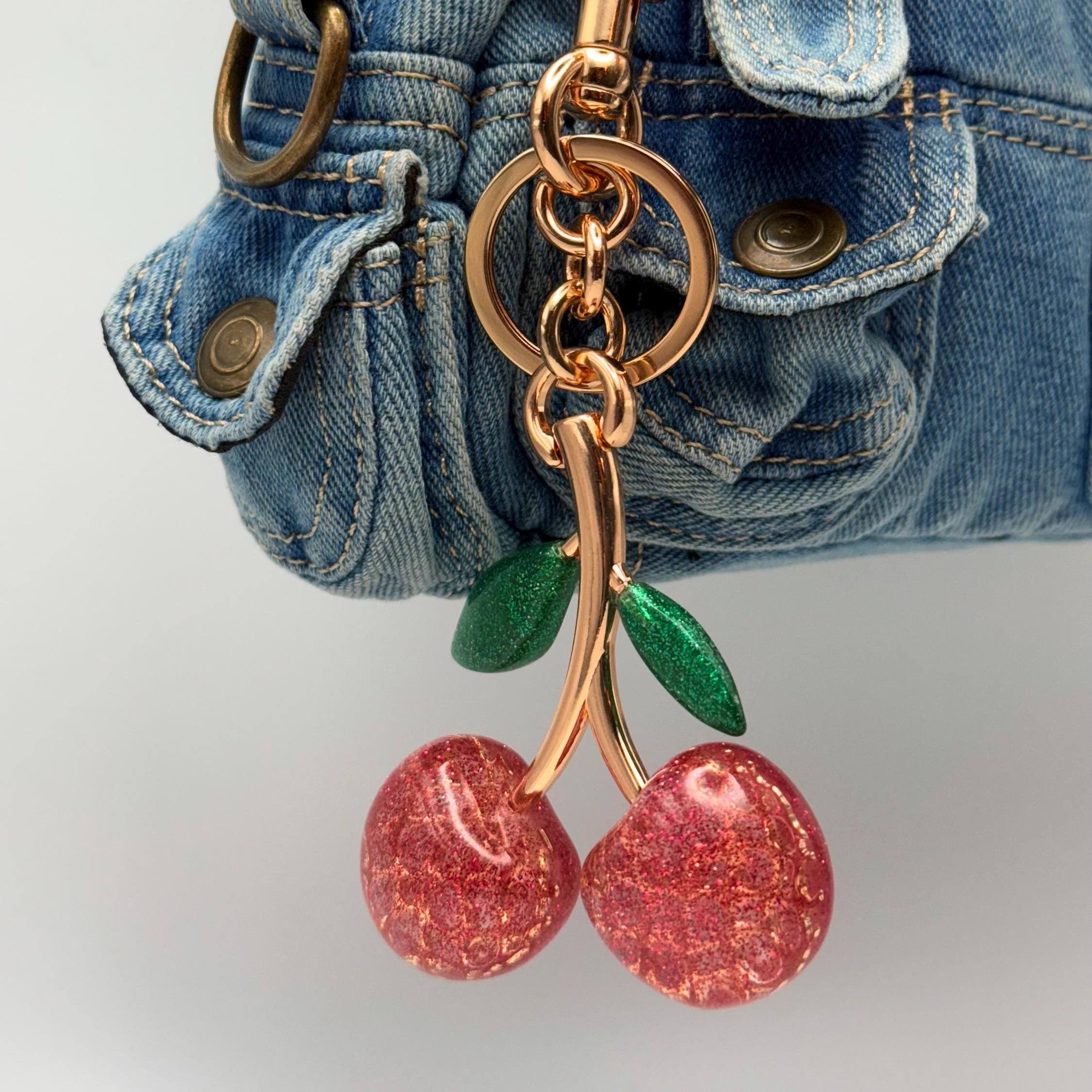 Add a pop of fun and sparkle to your bag or keys with this adorable cherry keychain! Featuring two glittery...