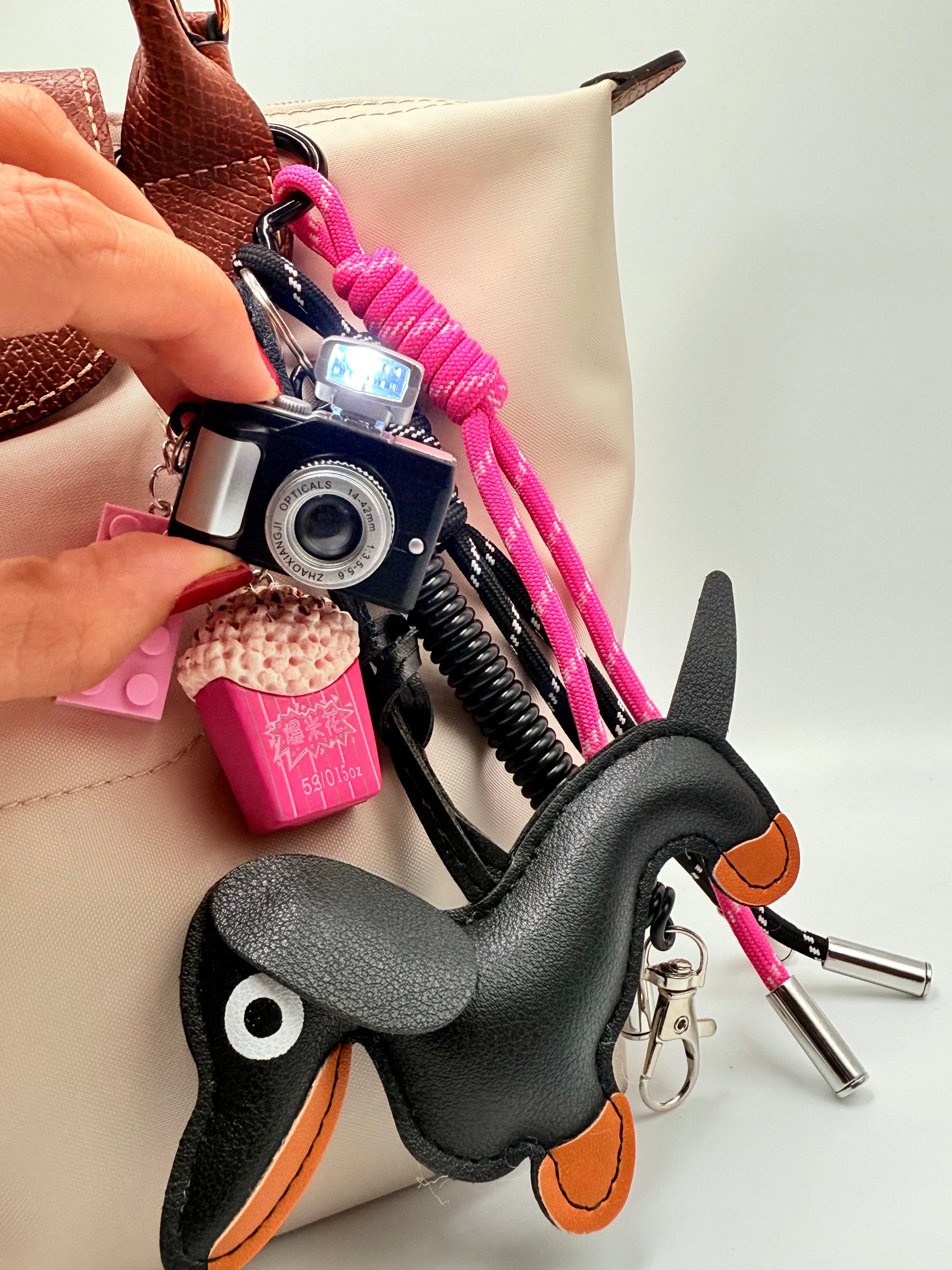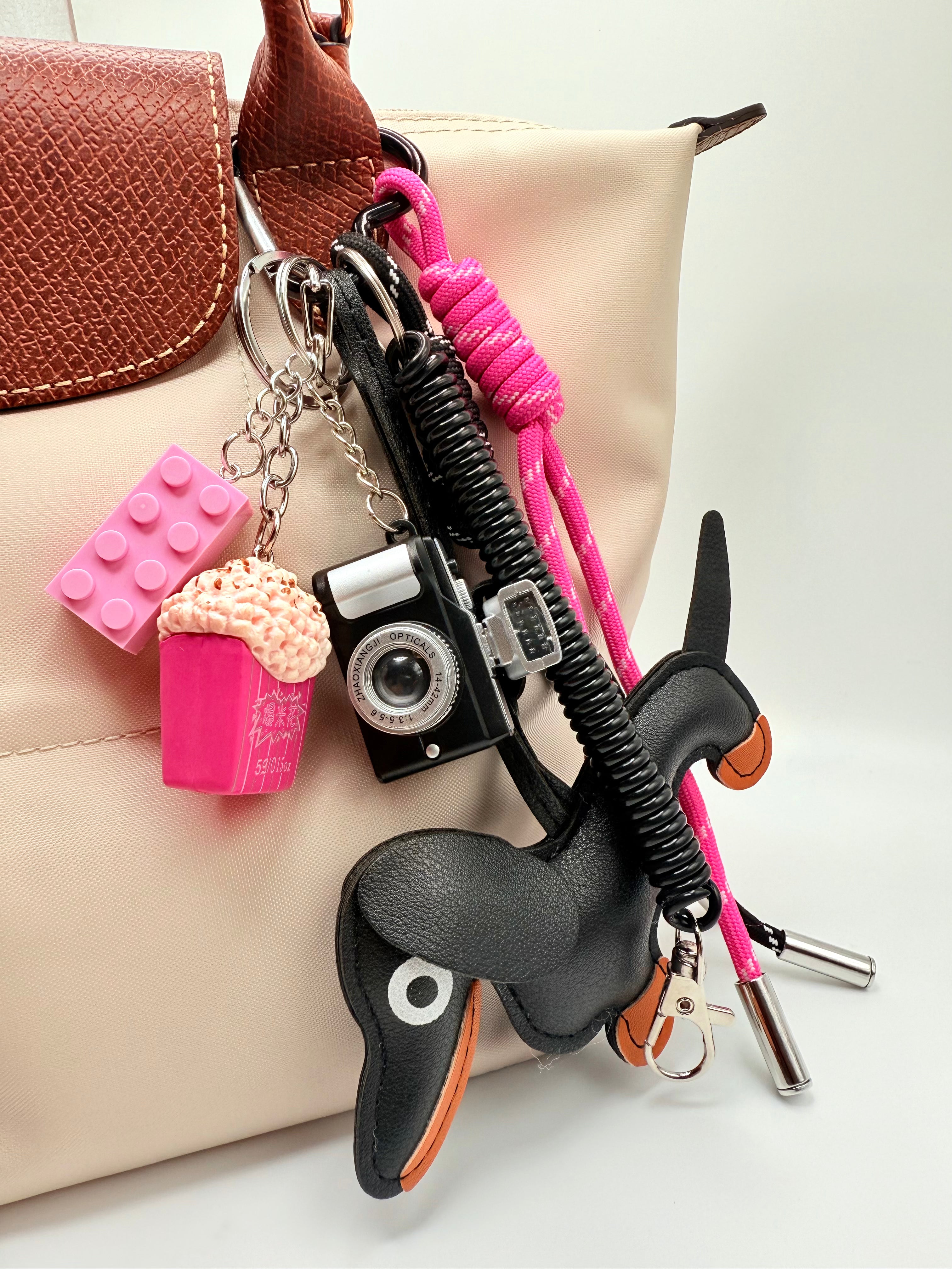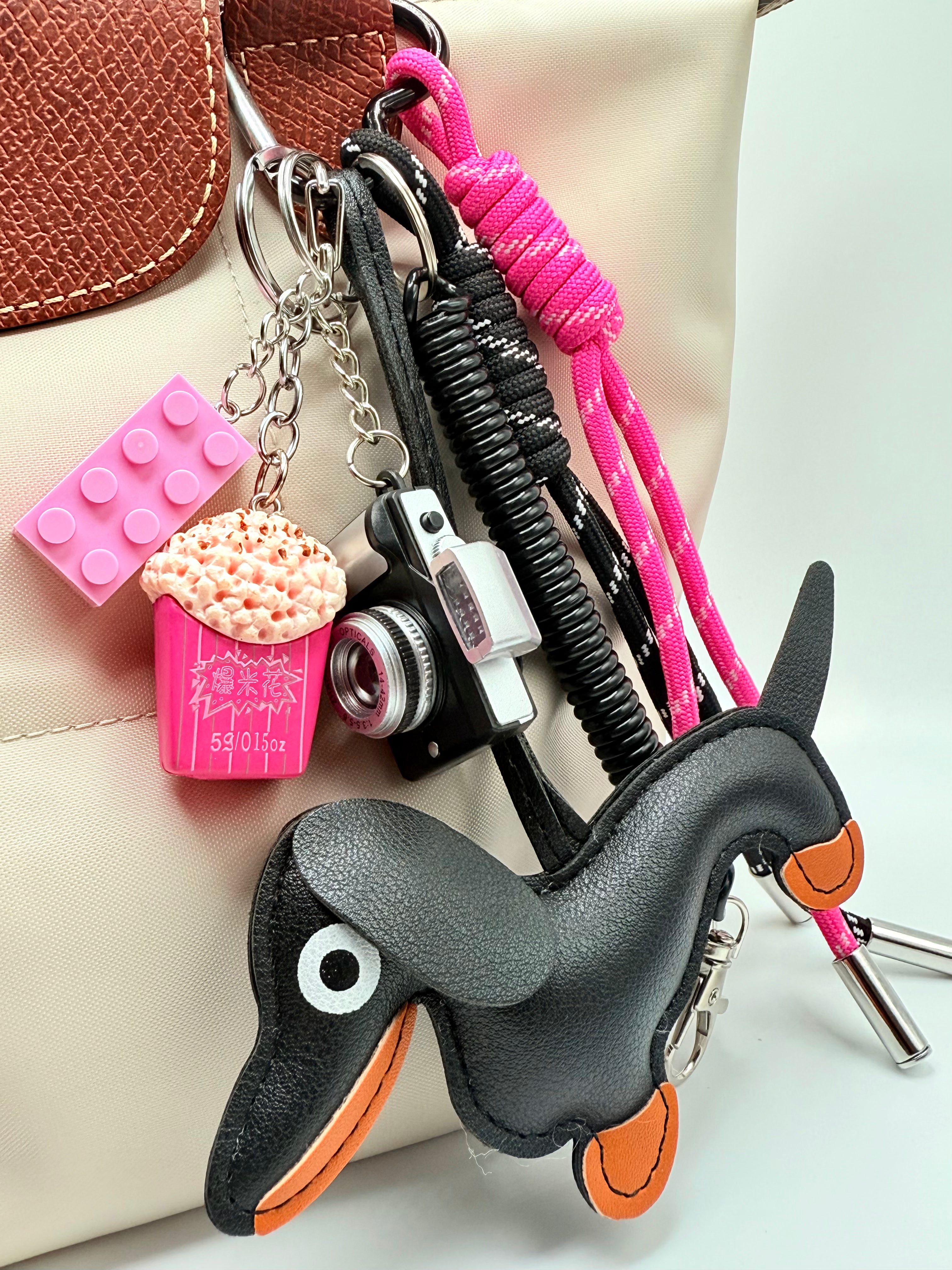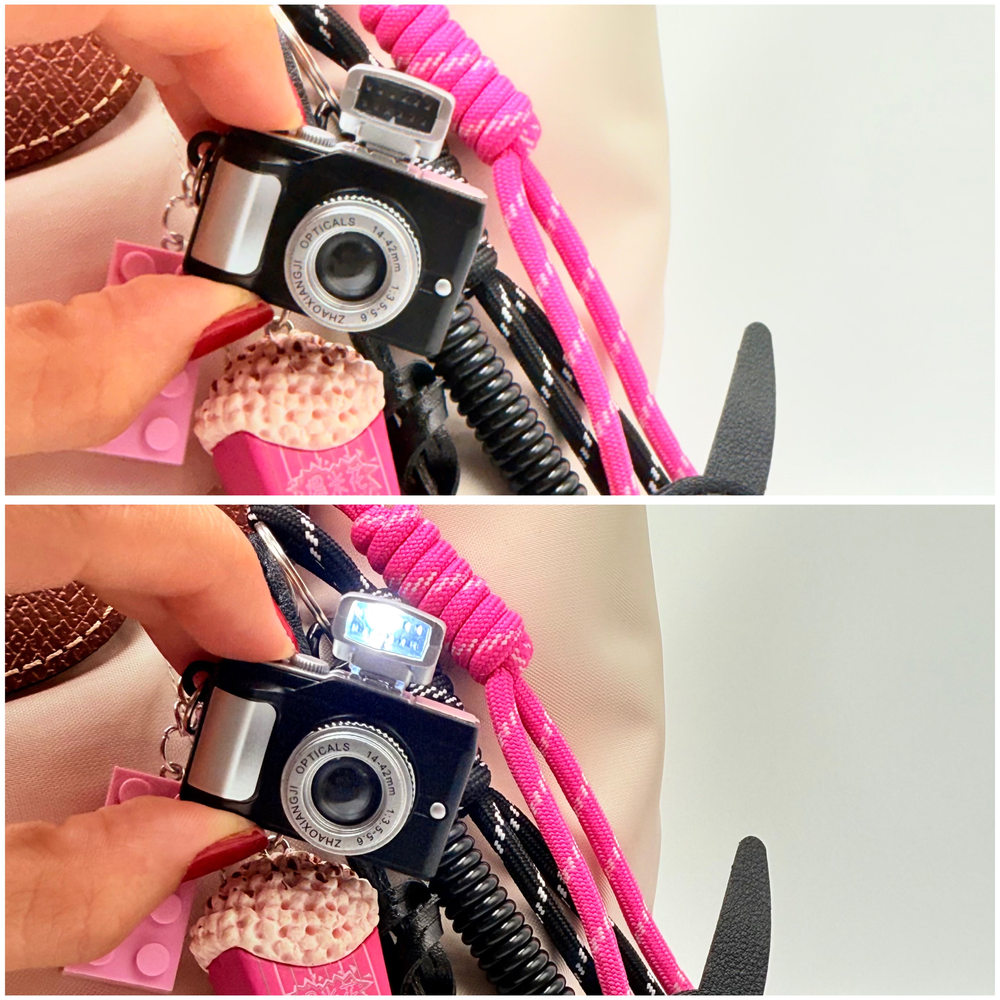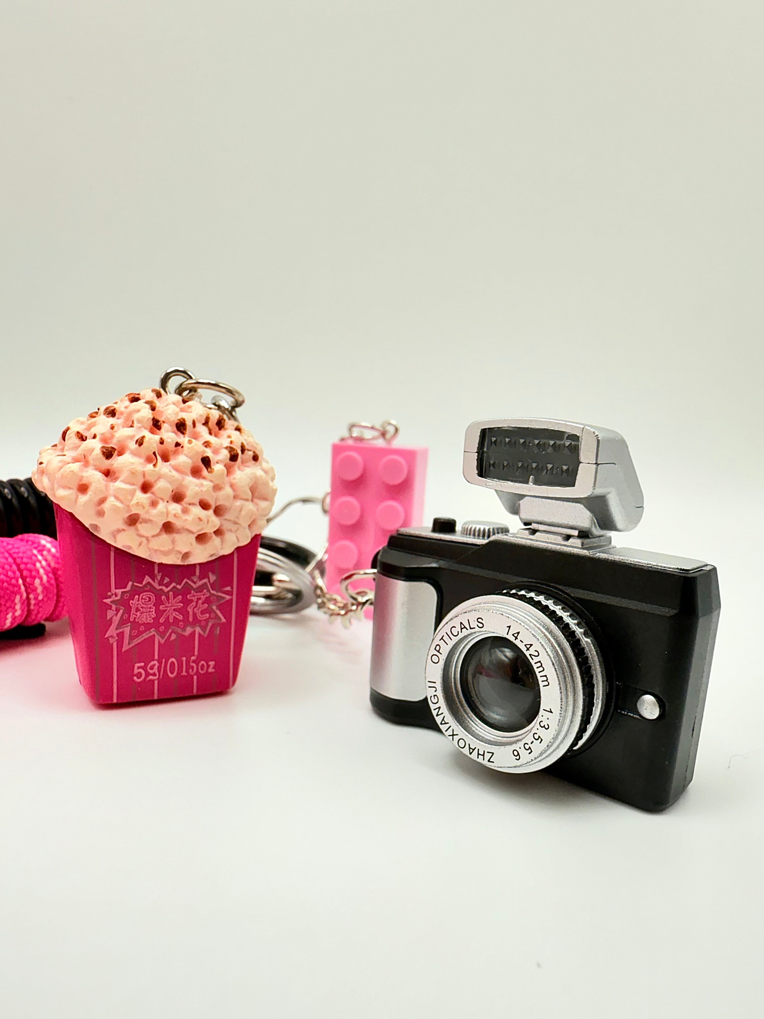 Retro Camera & Popcorn Bag Charm | Pink&Black Details